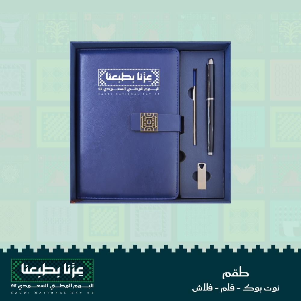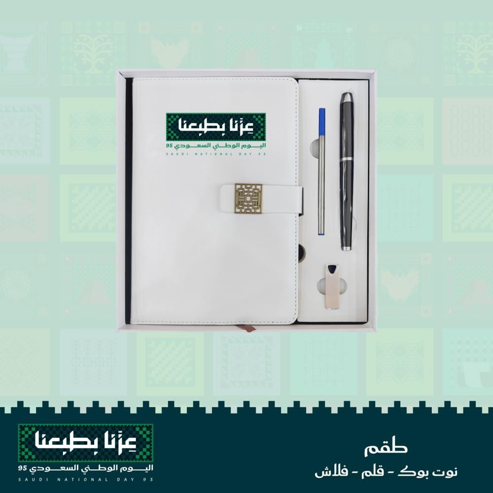 احتفل باليوم الوطني بطريقة راقية مع طقم (مذكرة – قلم – فلاش)! اقتنيه الآن و امنح من تحب هدايا لليوم الوطني تعبّر عن الفخر والانتماء بأسلوب أنيق.