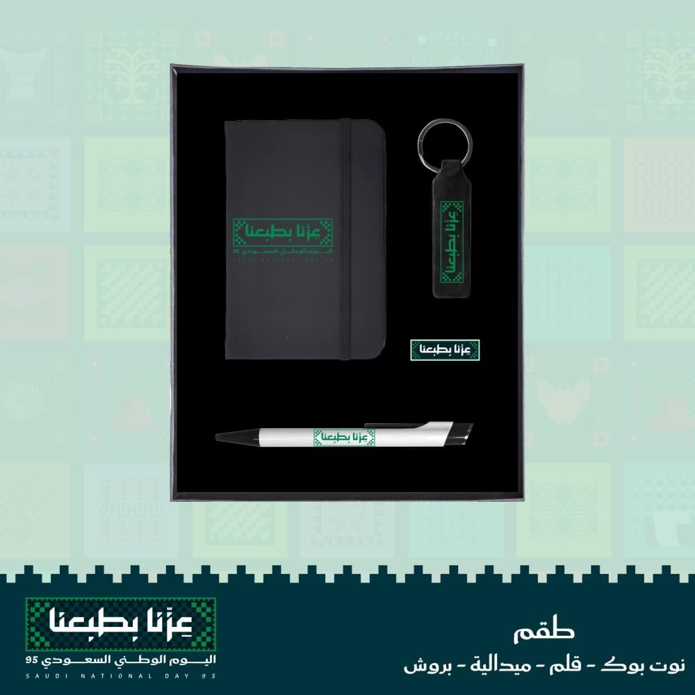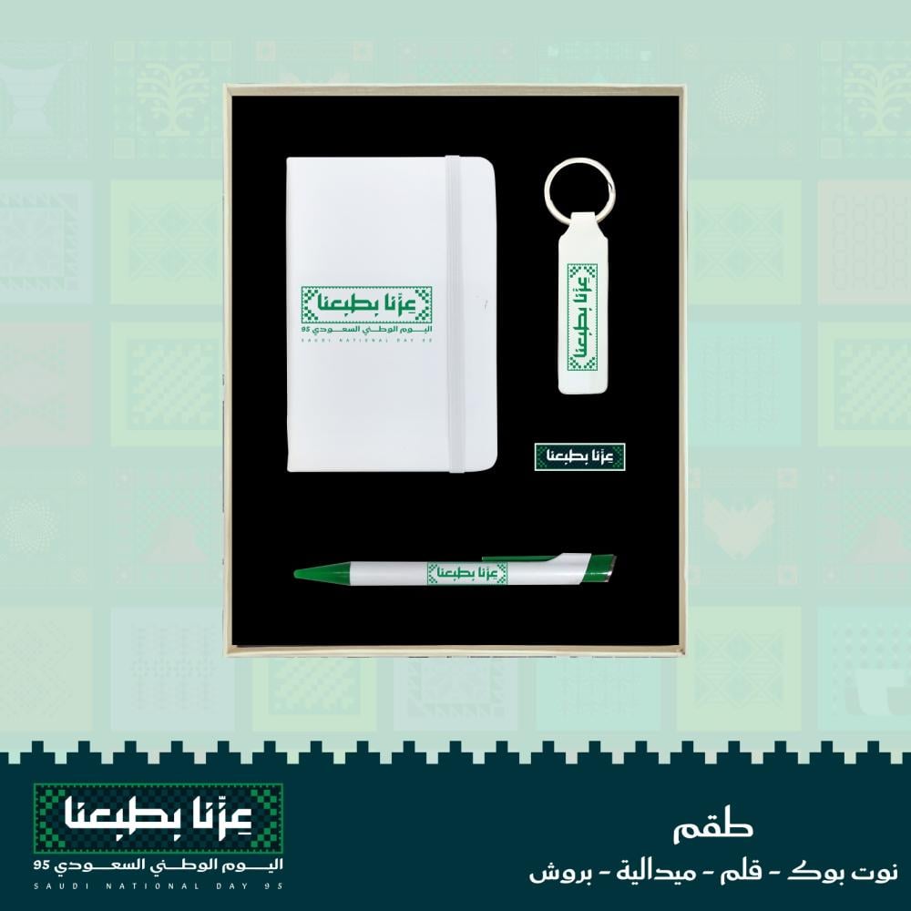 اكتشف طقم اجندة جلد يجمع بين دفتر ملاحظات قلم بروش وميدالية تذكارية. متوفر باللونين الأبيض والأسود مطبوع بهوية اليوم الوطنى، ويعد خيارًا مثاليًا للاستخدام الشخصي أو كهديّة تذكارية خلال الاحتفالات الوطنية.