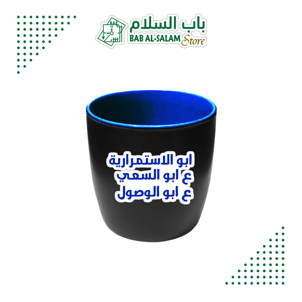 كوب سيراميك صغير أسود مطبوع - أبيض من الداخل - معرض باب السلام للهدايا الدعائية و المطبوعة